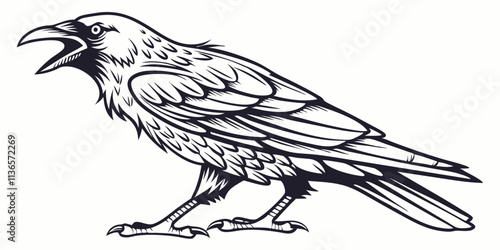 Fototapeta premium Vector Crow Line Art, isolated white background