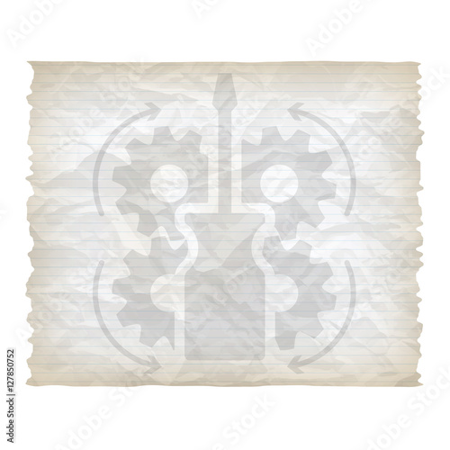 © garrifrotto, Obraz premium Vector crumpled lined paper with screwdriver and cogwheels