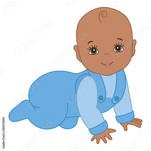 Fototapeta premium Vector Cute African American Baby Boy Crawling