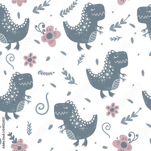 © Knstart Studio, Obraz premium Vector cute baby dinosaur pattern. Nursery illustration