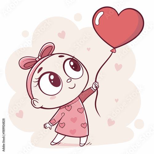 © TJKT, Obraz premium Vector cute Baby Girl With Love Heart