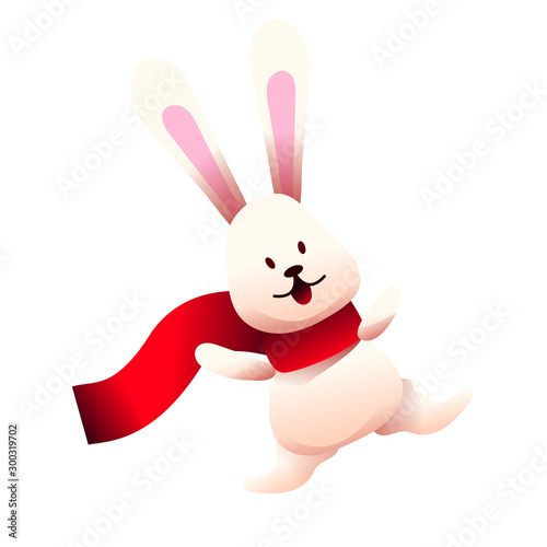 Obraz premium Vector cute bunny in red scarf. Cartoon rabbit