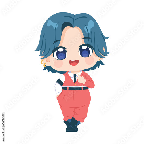 © aratehortua, Obraz premium Vector Cute Character Boy Idol Kpop Cartoon Illustration Isolated