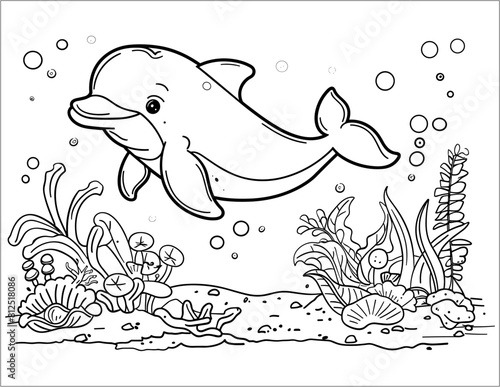 © NpicArt, Fototapeta premium Vector Cute Dolphin Coloring Sheets for Kids