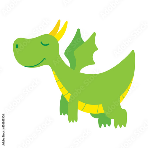 © siridhata, Fototapeta premium Vector Cute Green Dragon Flat Design Illustration