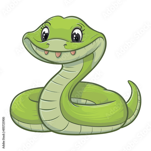 Fototapeta premium Vector cute green snake cartoon isolated on a white background