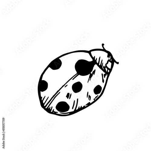 © Natalia, Obraz premium Vector cute ladybug or ladybird. Hand painted linear insects. Graphic clipart isolated on background. Botanical and wedding illustration. For designers, invitations, decoration, postcard