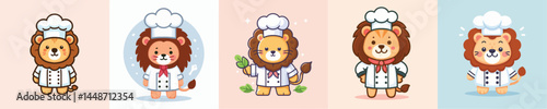 Naklejka premium vector cute lion cosplay chef