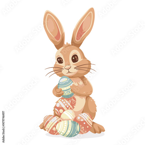 © PoYu, Obraz premium Vector cute rabbit holding easter eggs