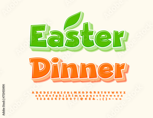 Fototapeta premium Vector cute template Easter Dinner. Orange creative Font. Bright 3D Alphabet...