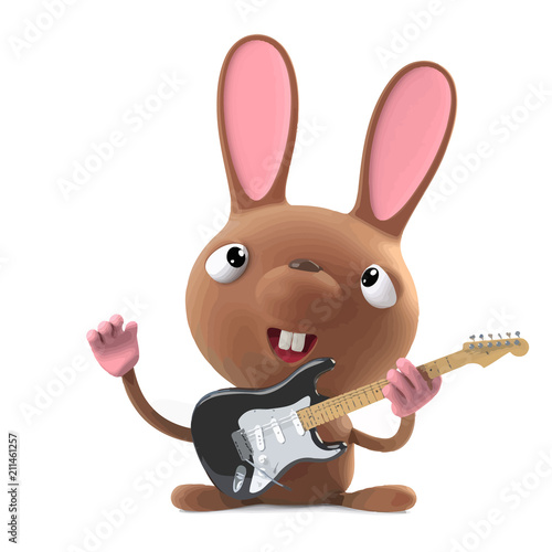 © Steve Young, Fototapeta premium Vector 3d Cute cartoon Easter bunny rabbit plays electric guitar