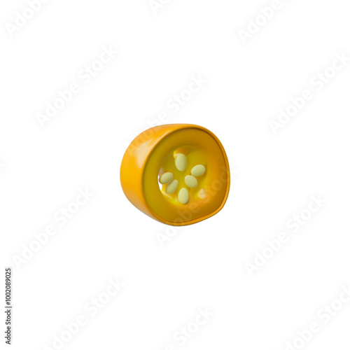 Fototapeta premium Vector 3D illustration with the image of a round cut piece of yellow pepper.