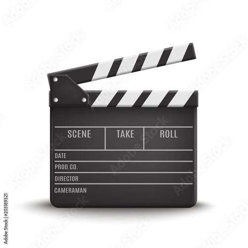 © Vlad, Obraz premium Vector 3d realistic illustration of open movie Clapperboard or clapper isolated on background