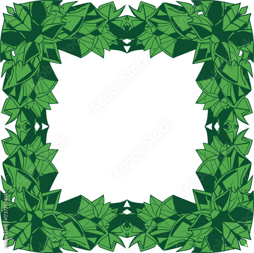 © Vector illustrator, Naklejka premium Vector decorative frame with geometric leafline abstract design in seamless square style