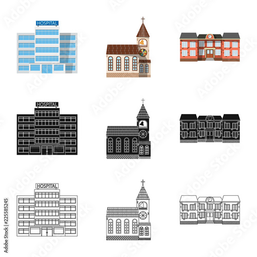 Fototapeta premium Vector design of building and front sign. Collection of building and roof stock symbol for web.