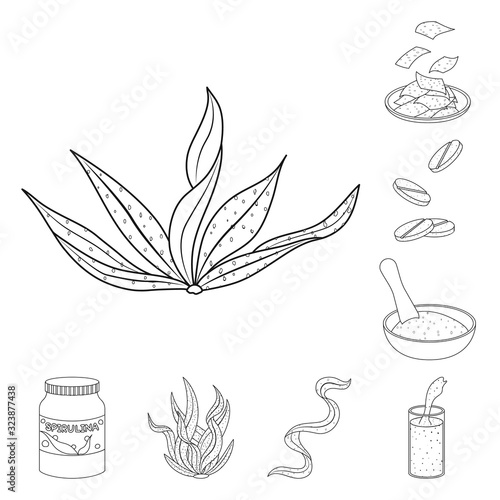 Fototapeta premium Vector design of food and vegan sign. Set of food and weed vector icon for...