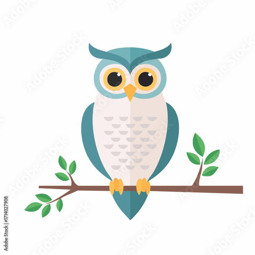 © Shin, Naklejka premium Vector design of owl on branch, symbolizing intelligence, wisdom, and forest wildlife.