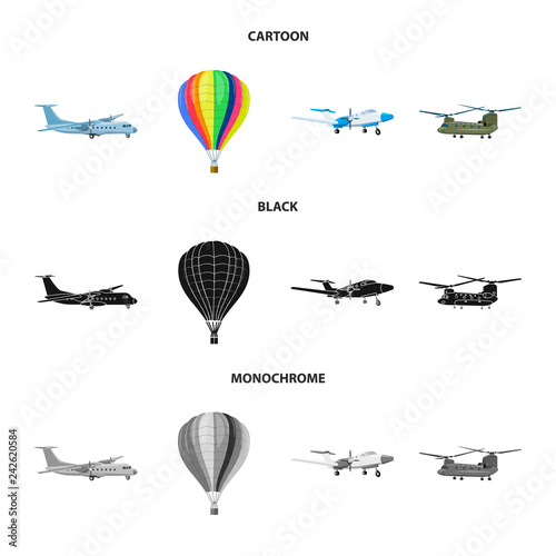 Obraz premium Vector design of plane and transport icon. Set of plane and sky stock vector illustration.