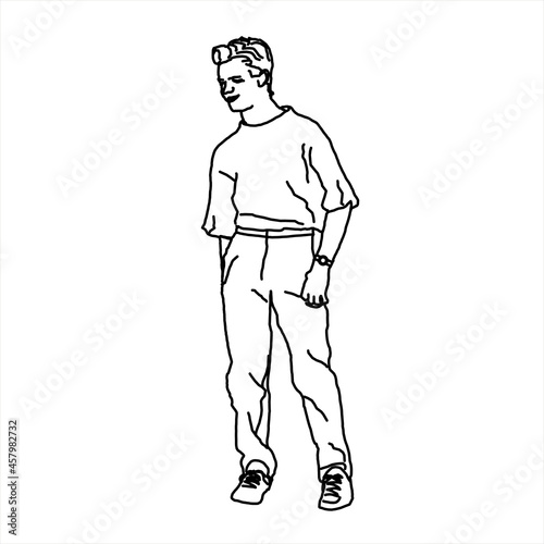 Fototapeta premium Vector design of sketch of a cool and cool posing teenage boy