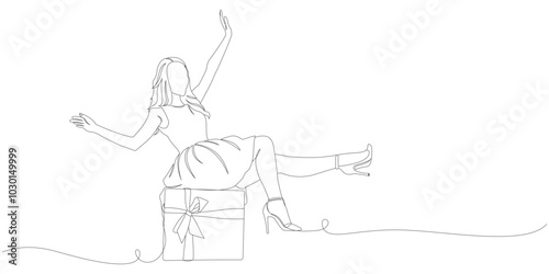© Art Ris, Fototapeta premium Vector design of woman sitting on gift box