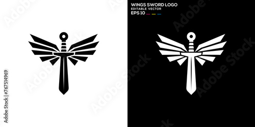 Obraz premium Vector design template of sword logo, defense, attack, kingdom, power, symbol icon EPS 10