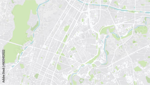 © Ameer, Fototapeta premium Vector detailed light gray map illustration featuring city streets green parks and winding rivers in an aerial view
