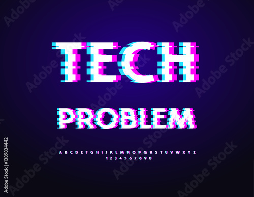 © Popskraft, Obraz premium Vector Digital logo Tech Problem. Error Effect Font. Modern Glitch Alphabet Letters and Numbers set