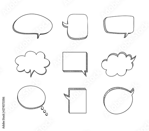 © Aleksey, Fototapeta premium Vector Doodle Frames Set Isolated on Whtie Background, Hand Drawn Speech Bubbles Collection, Outline Drawings.