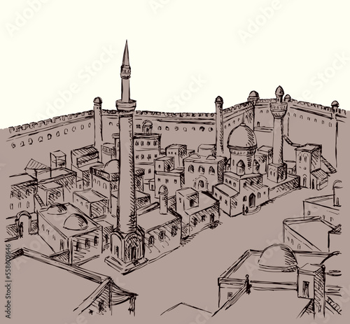 © Marina, Obraz premium Vector drawing. Ancient eastern town