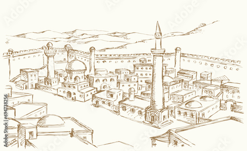 © Marina, Obraz premium Vector drawing. Ancient eastern town