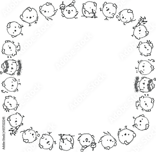 © BoonLan, Obraz premium vector drawing cartoon chick border frame