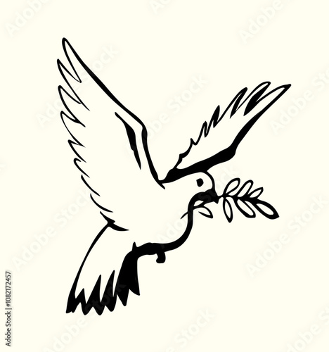 © Marina, Obraz premium Vector drawing. Cute flying dove
