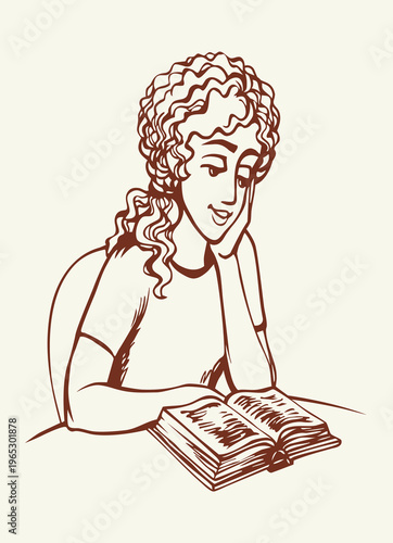 © Marina, Obraz premium Vector drawing. Girl reading a book