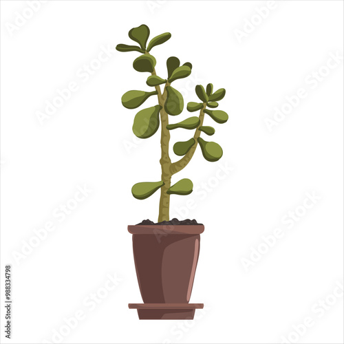 Fototapeta premium vector drawing house plant in pot, money tree, Crassula ovata, succulent isolated at white background, hand drawn illustration