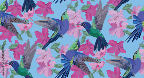 © Lana, Fototapeta premium Vector drawing of a hummingbird and exotic flowers in vintage style