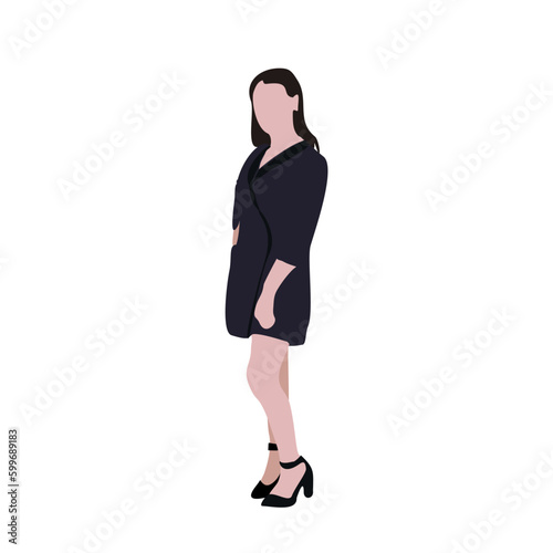 © Vi Min, Fototapeta premium Vector drawing of a running woman in summer clothes. Flat image. City infographics