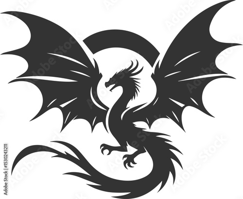 © MostAklima, Fototapeta premium Vector drawing silhouette of a flying dragon illustration