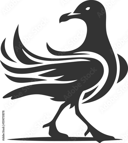 © LUTHFAN NAHAR LABONY, Obraz premium Vector drawing silhouette of a seagull bird artwork black