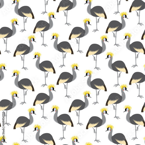 Fototapeta premium vector drawing vector drawing seamless pattern with bird, hand drawn black crowned crane ,hand drawn natural background