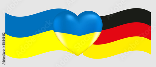 © evgen_kulish, Obraz premium Vector drawing volume heart in the colors of the Ukrainian flag and flags of Ukraine and Germany flag