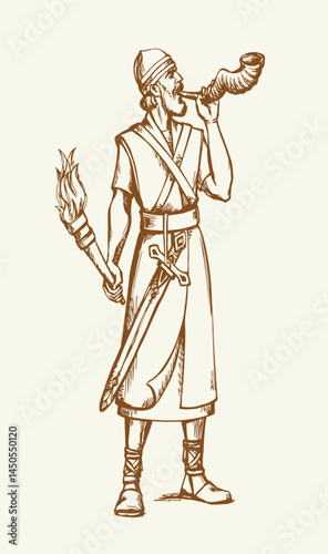 © Marina, Obraz premium Vector drawing. Warrior with torch