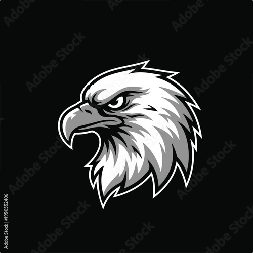 © Moon, Fototapeta premium Vector eagle head illustration, white and gray on black background