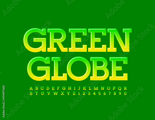 © Popskraft, Fototapeta premium Vector eco concept Green Globe. Glossy modern Font. Gradient set of Alphabet Letters and Numbers
