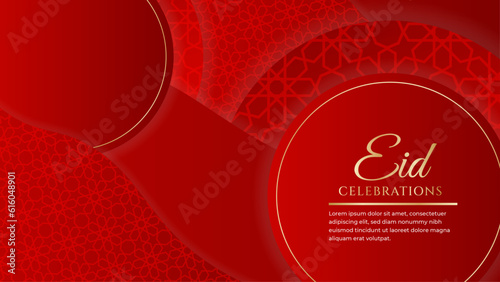 Fototapeta premium Vector eid mubarak celebratory red and gold illustration