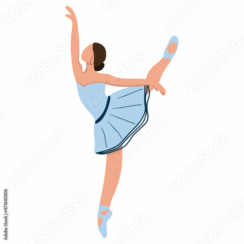 © Евгения Крупель, Obraz premium Vector elegant ballerina in a blue tutu dress dancing on pointe shoes. Female beautiful classic theater dancer character on isolated background. Ballet dancer illustration