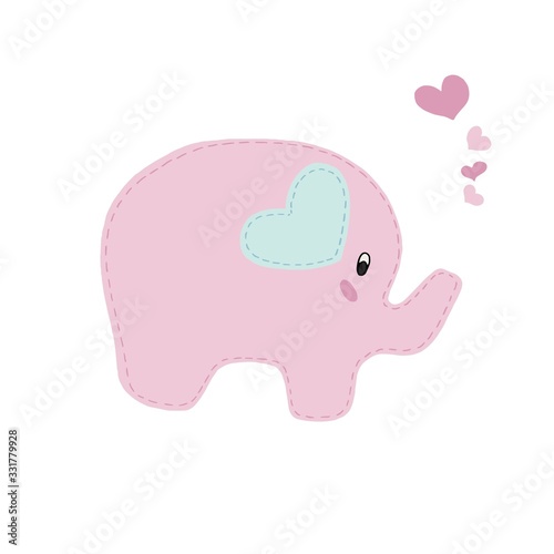 Fototapeta premium vector element, cute baby elephant with decorative stitching for a child with hearts
