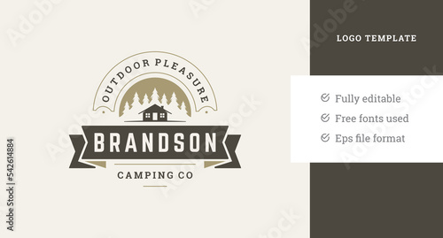 © provectors, Obraz premium Vector emblem with countryside hut and forest