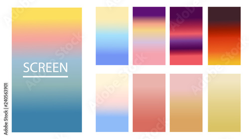 Obraz premium Vector EPS 10 Gradient Set. Different colors. Modern Smartphone screen, mobile app Template. Design for Wallpaper, background, banner, flyer, Social media post.