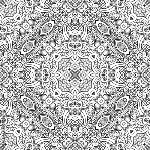 Fototapeta premium Vector ethnic hand drawn line art seamless pattern