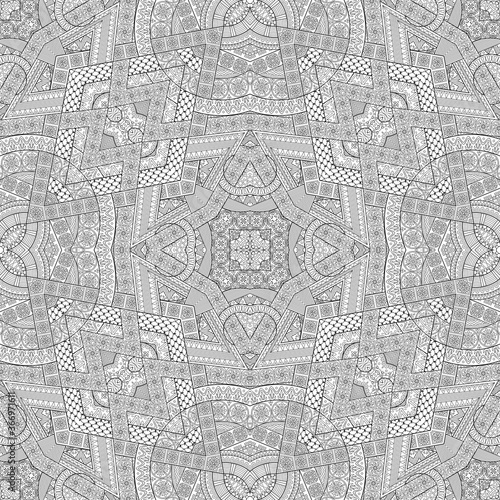Fototapeta premium Vector ethnic hand drawn line art seamless pattern